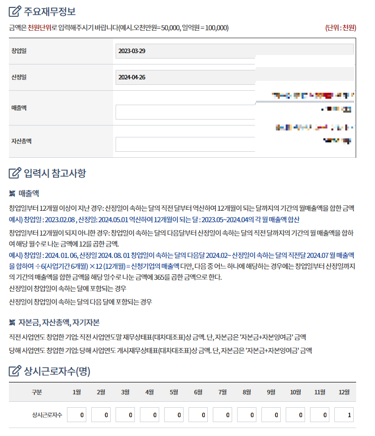 창업일로부터 12개월 이상 / 이하에 따라 또 구분하여