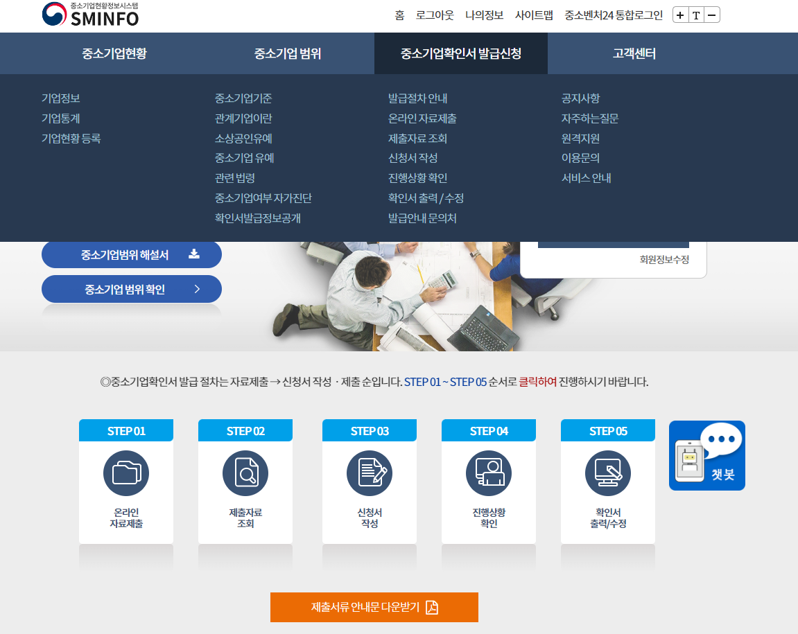 에서 중소기업확인서(소상공인확인서)