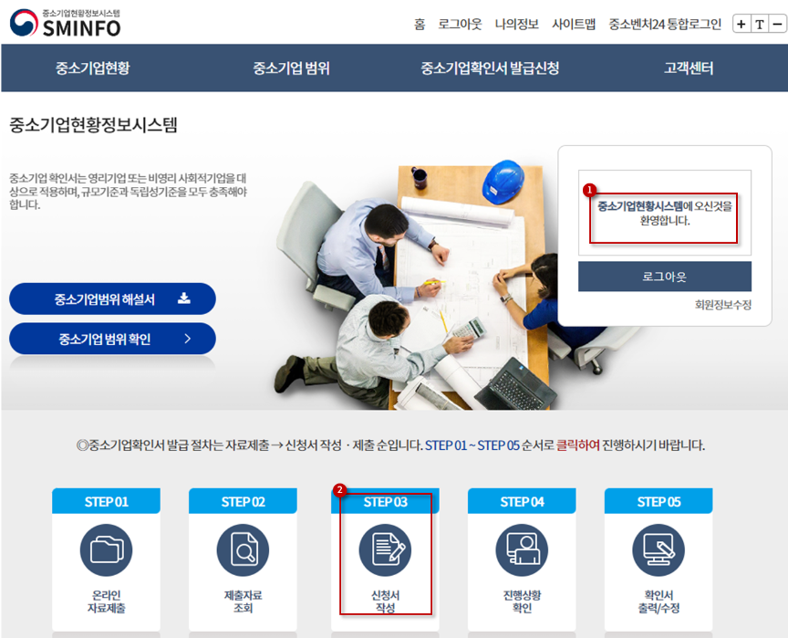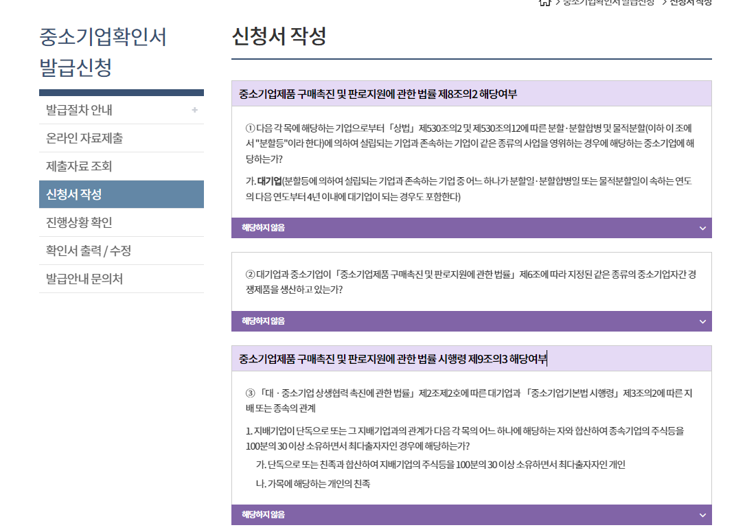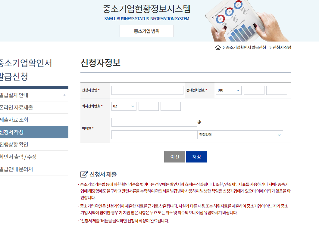 중소기업확인서 발급신청 -