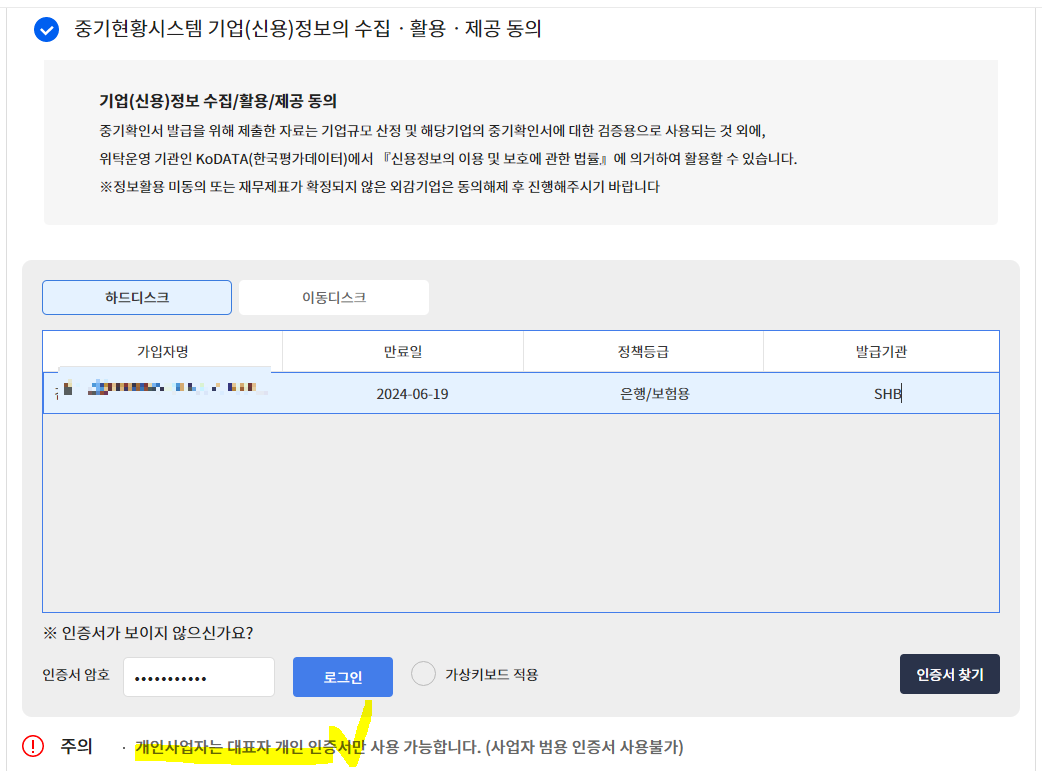 개인인증서로 진행하면 됩니다.