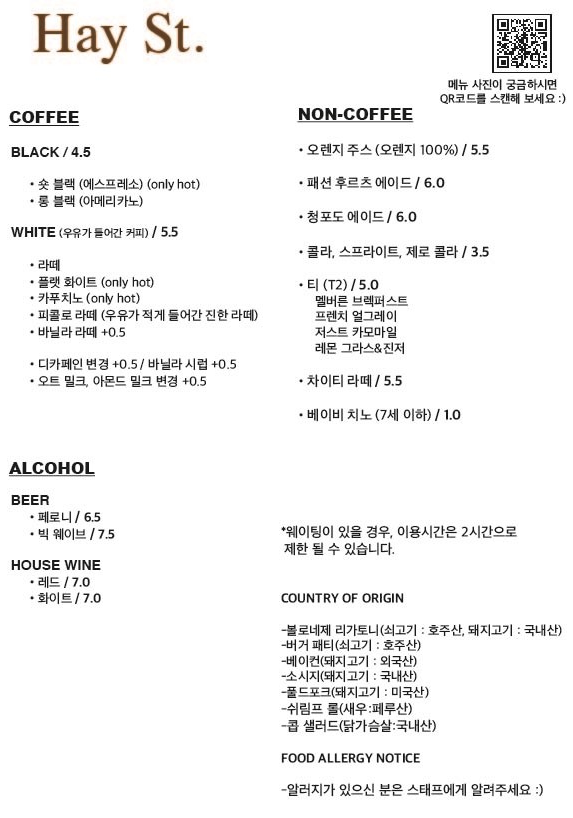 메뉴 사진은 QR코드로 확인할 수 있어요.