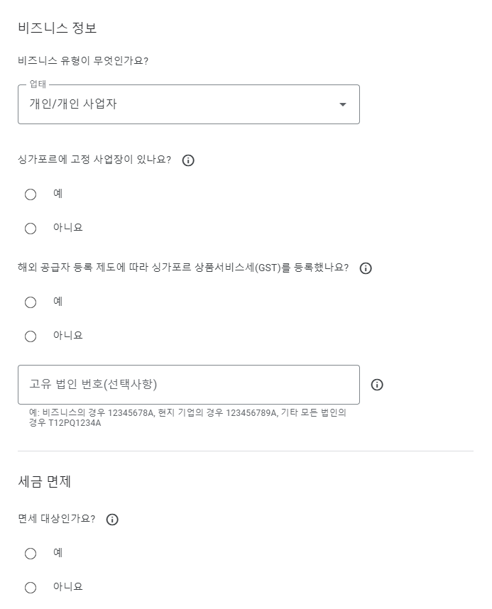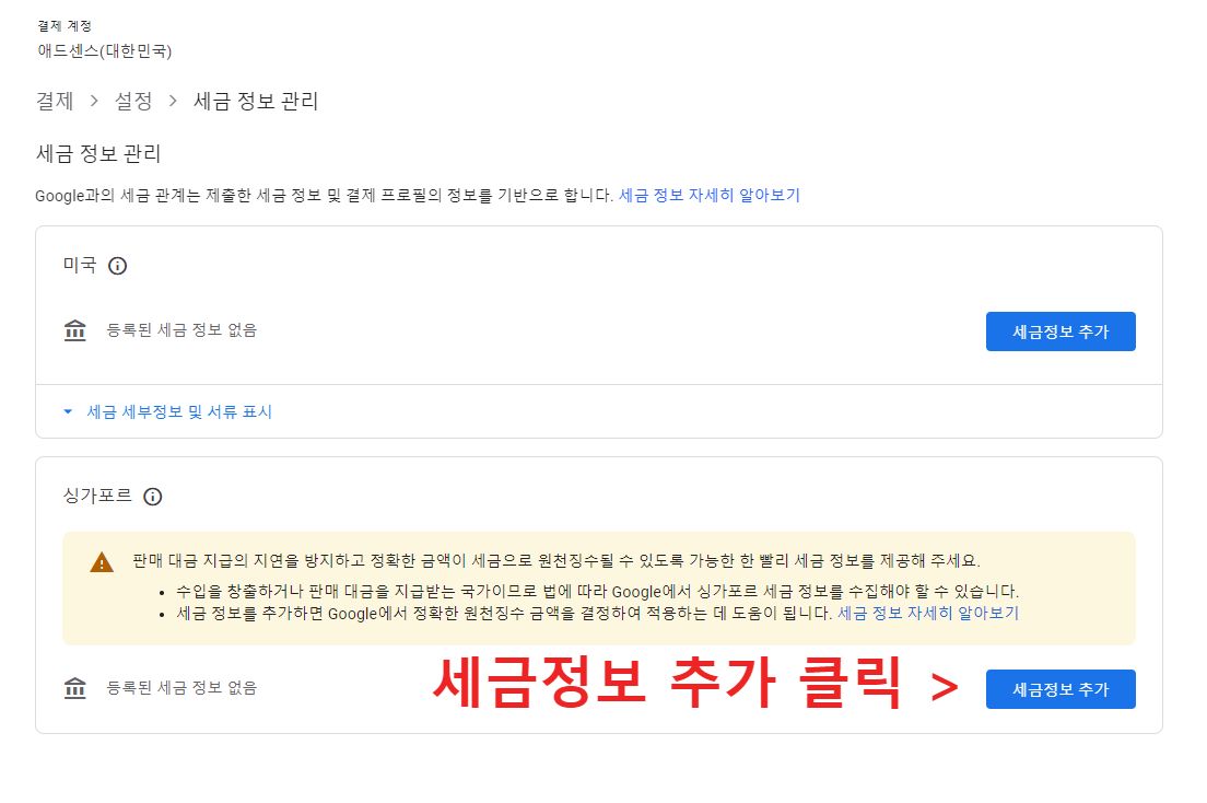 구글 에드센스 싱가포르 세금정보 방법이었습니다.