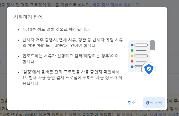 세금정보가 승인되었다는 멘트를 확인할 수 있습니다.