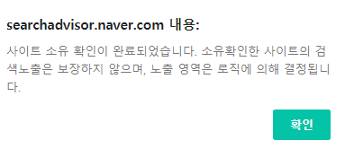 그렇게 태그를 붙여넣고 저장하고 나면, 소유확인 버튼을 누를 수 있게됩니다. (소유주 확인 완료)