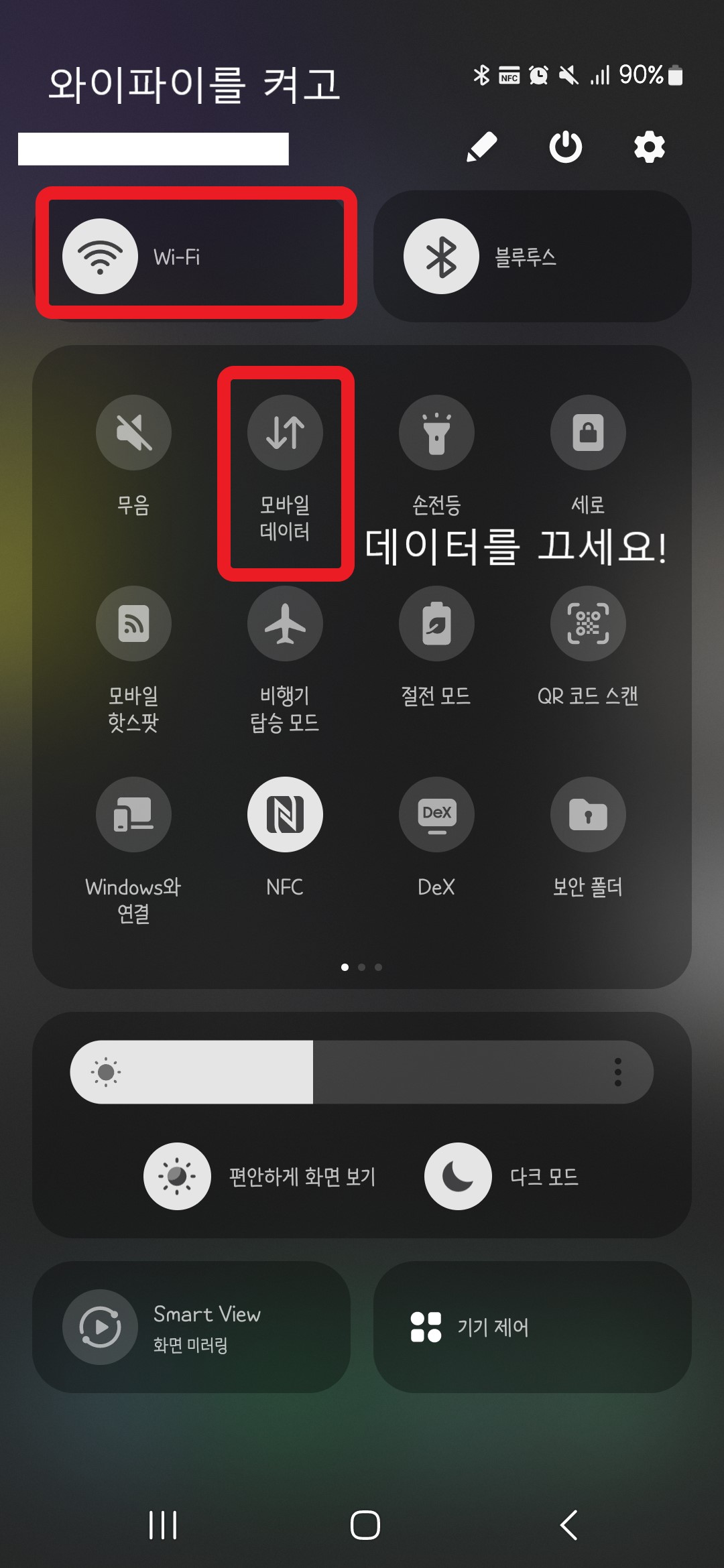 그리고 모바일 데이터는 잠시 꺼둡니다.