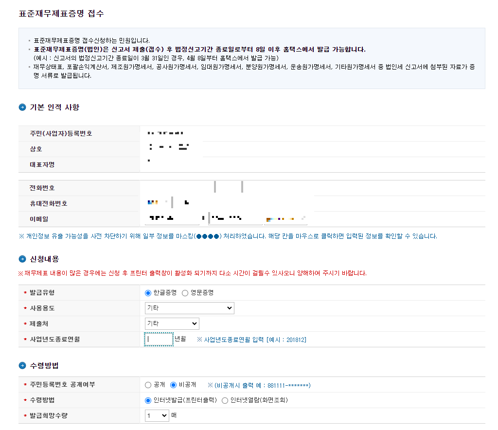 표준재무제표 홈택스 발급 방법