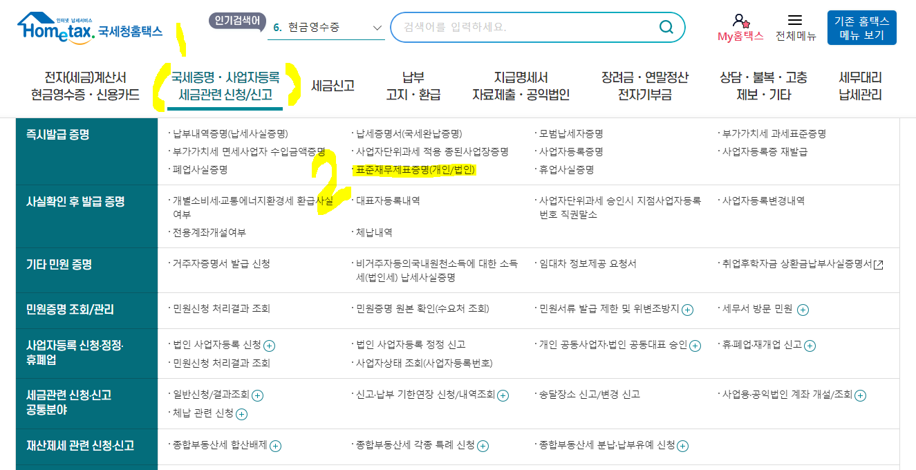 홈택스에서 쉽게 표준재무제표 발급받으세요~!