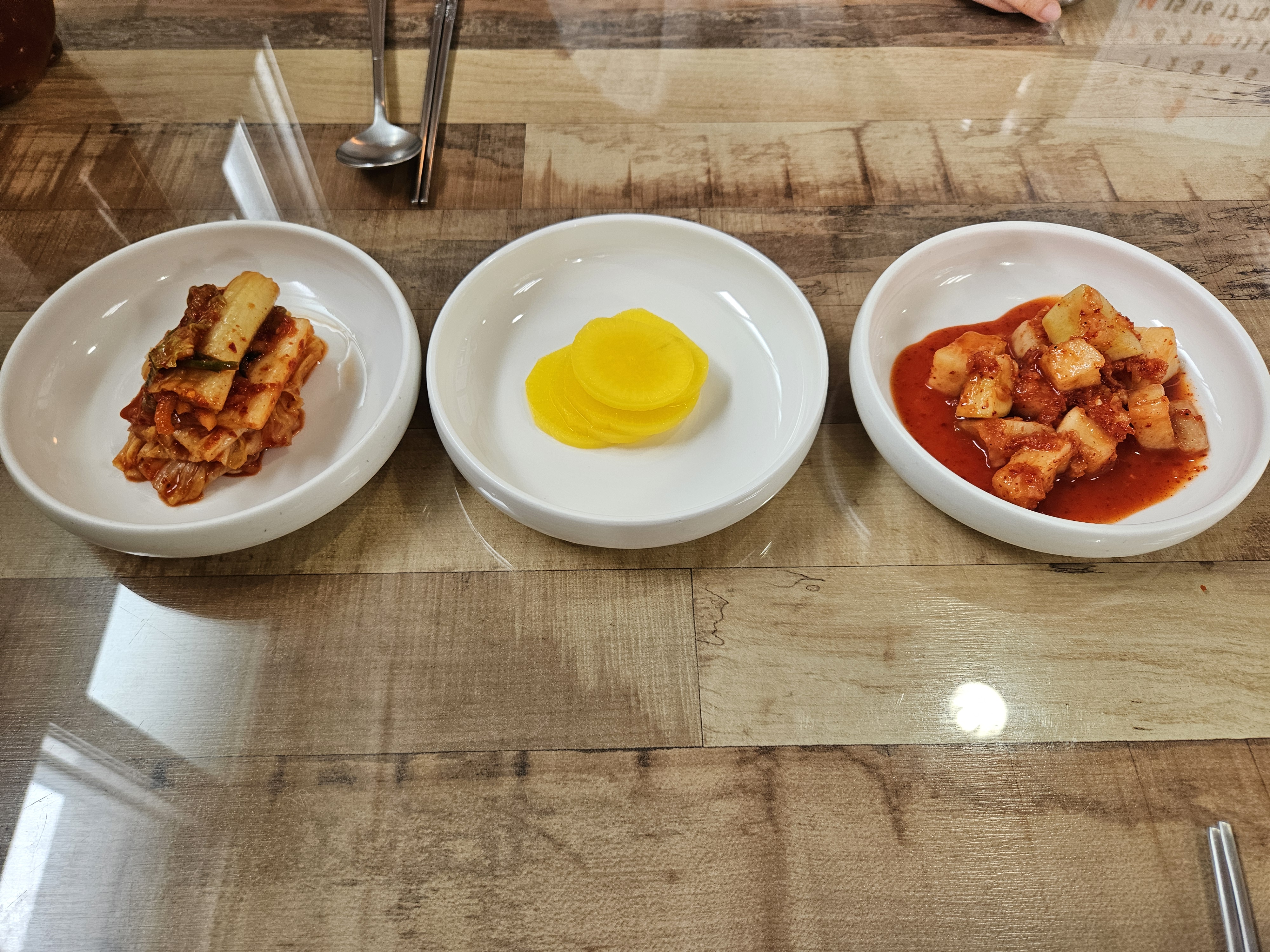 깔끔하게 담아주신 김치, 단무지, 깍두기
