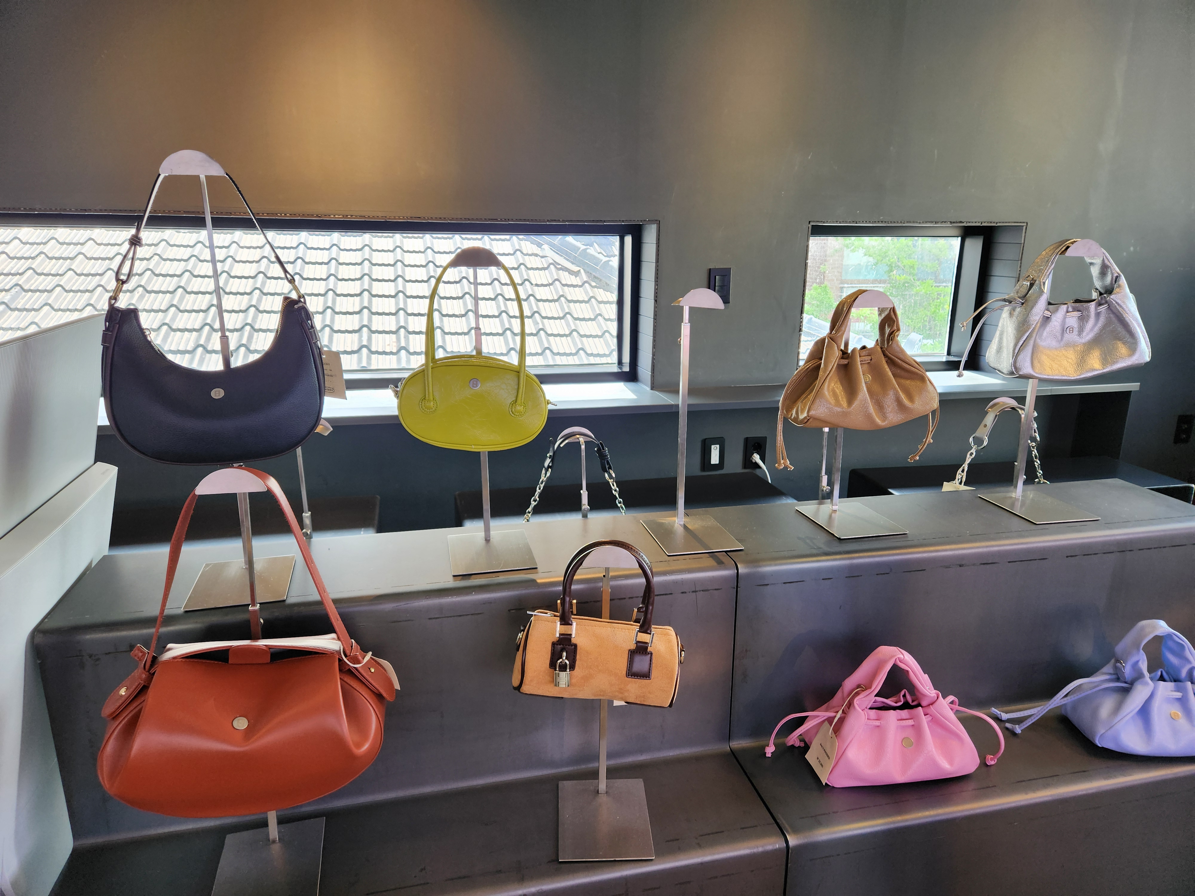 계단을 올라올 때 봤던 가방들과는 사뭇 다르게 패브릭보다는 가죽 제품이 더 많은 것 같았어요.