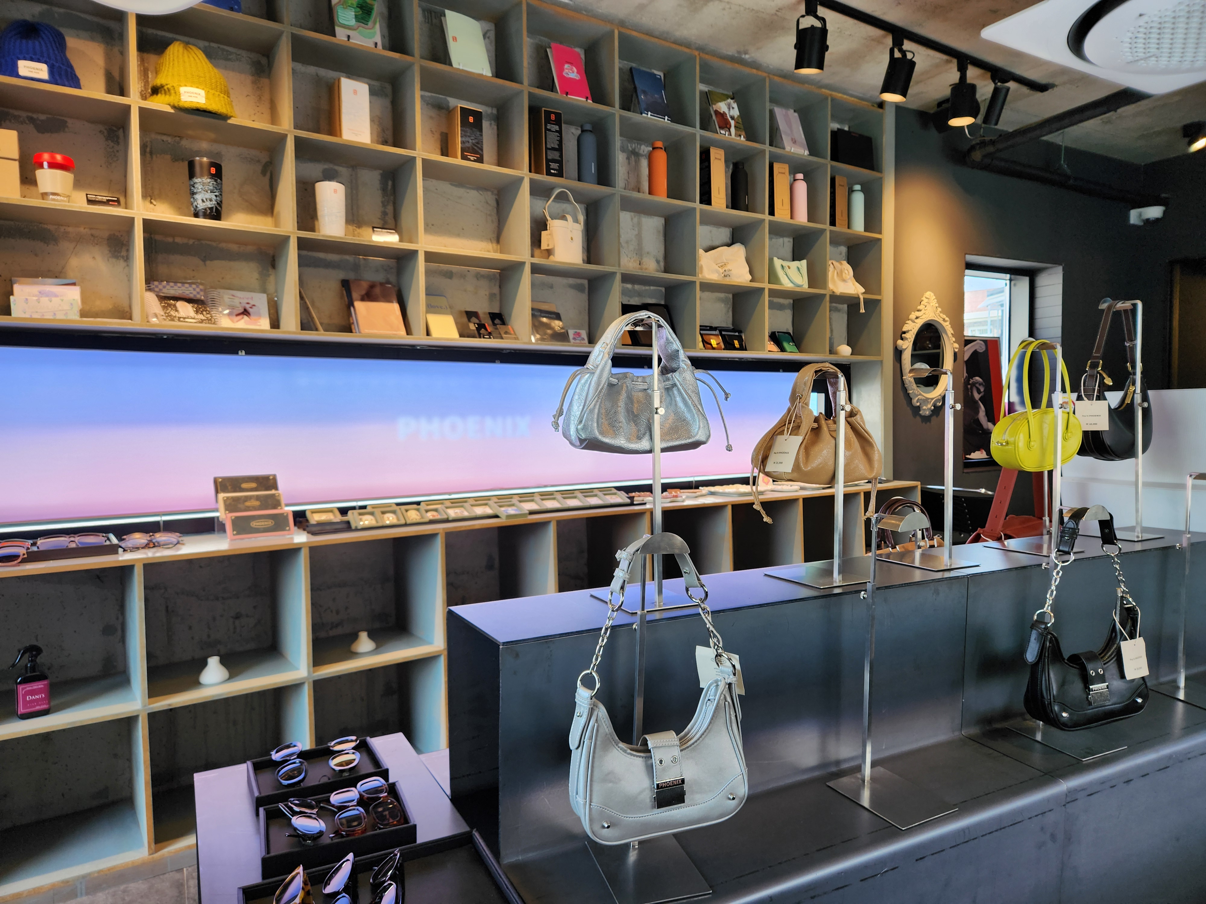 2층은 기존에 있던 테이블을 좀 더 빼고, 가방과 각종 액세서리류 진열장을 더 늘린 것 같습니다.