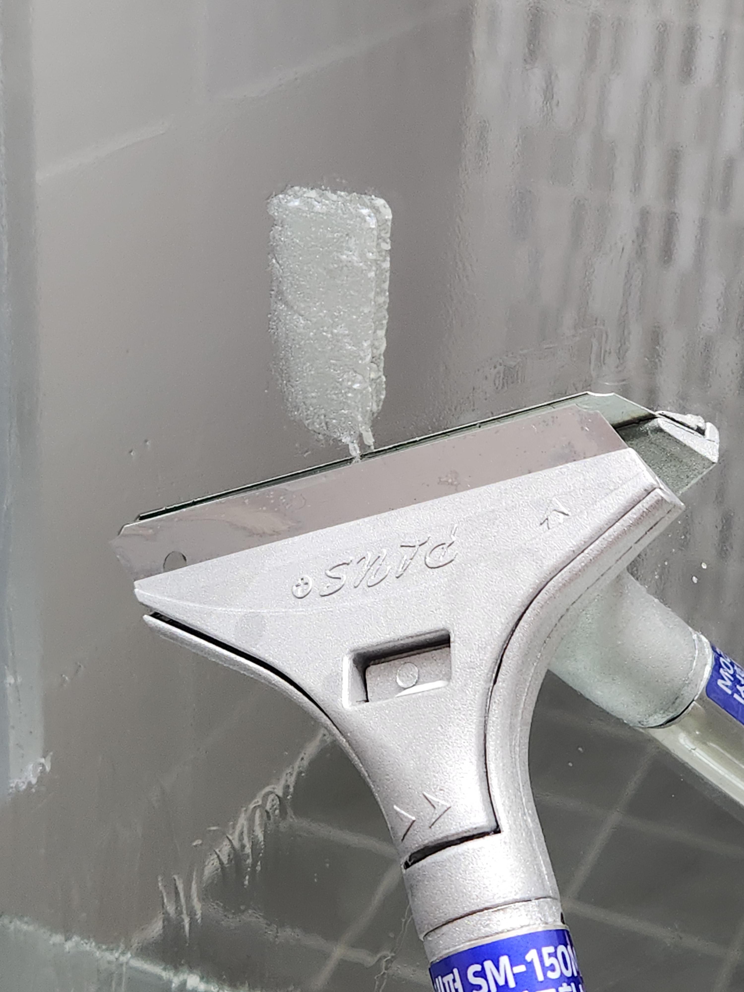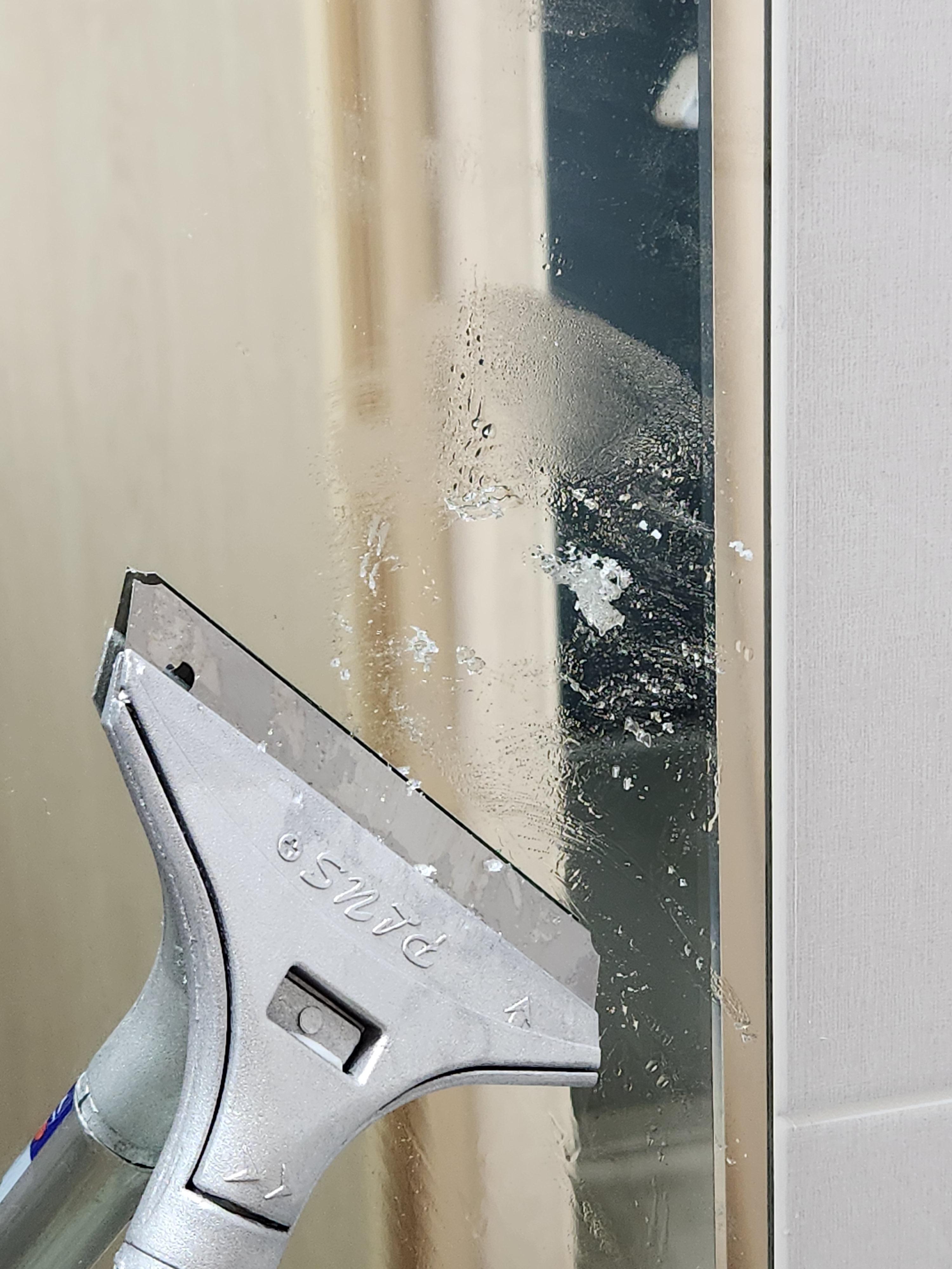 그냥 칼로 밀어내고 나면 칼날에도, 거울에도 끈적하게 남아있잖아요.