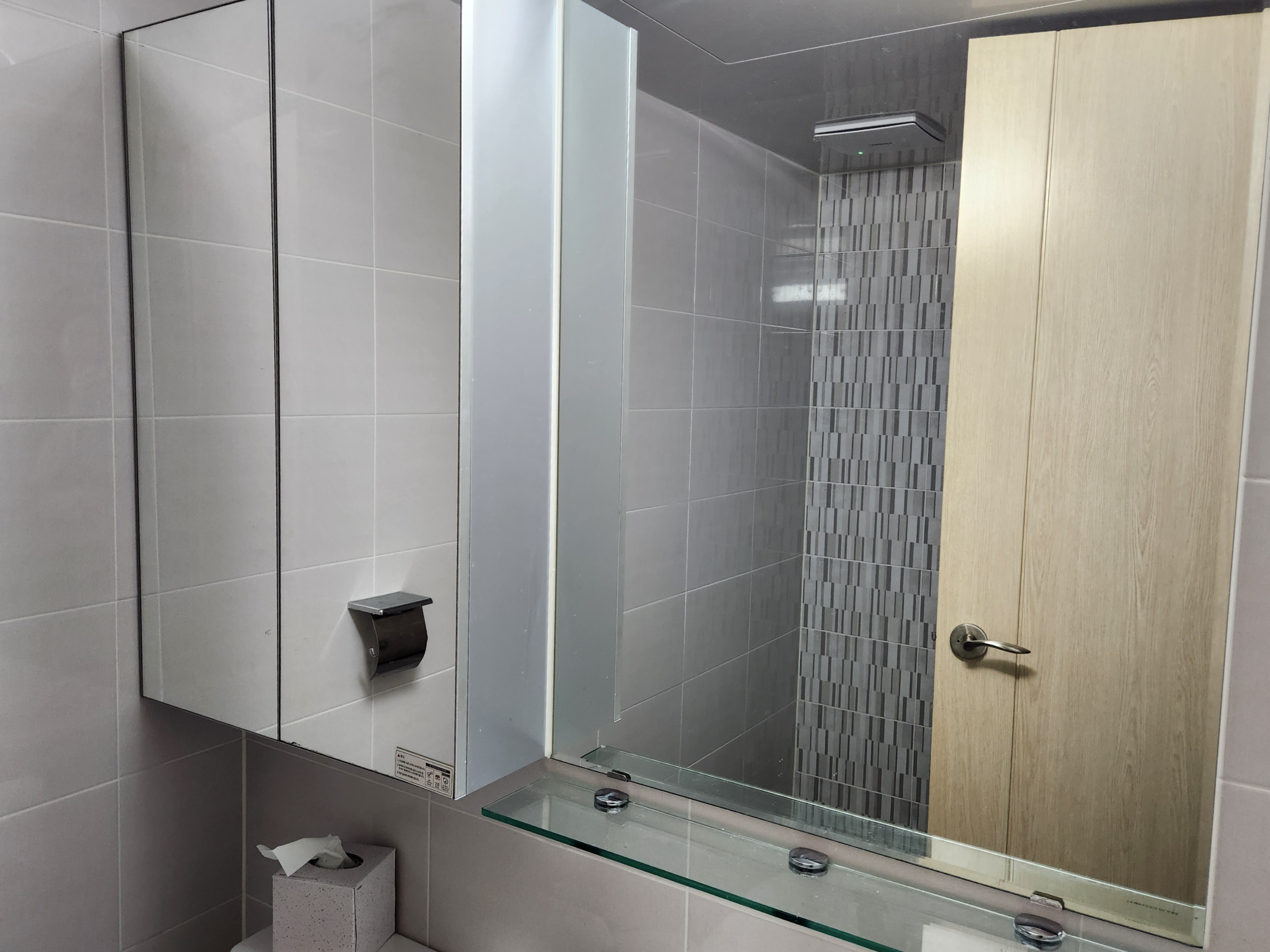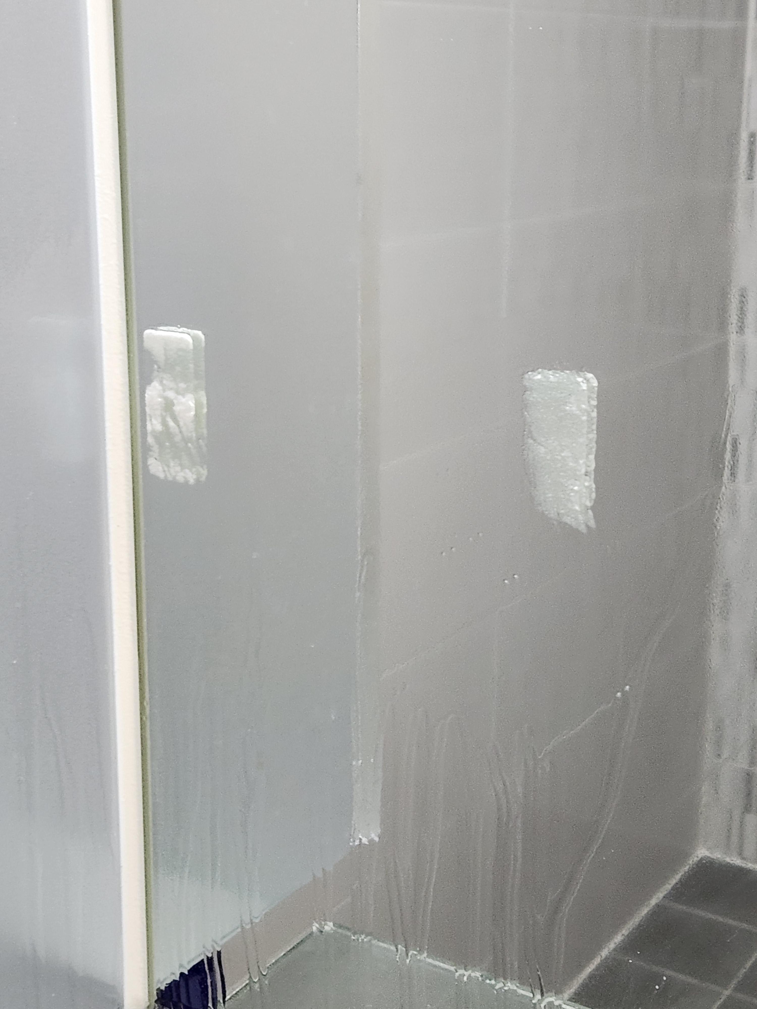 다음은 수건 거울장에 붙어있던 오래된 스티커 제거하기.