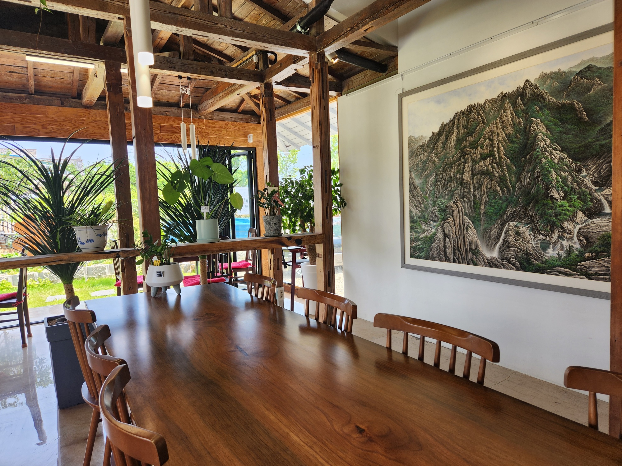 대형 테이블이 있는 한쪽에는 벽에 풍경화가 걸려있어서 그런지 더 옛 느낌이 나는 것 같아요.