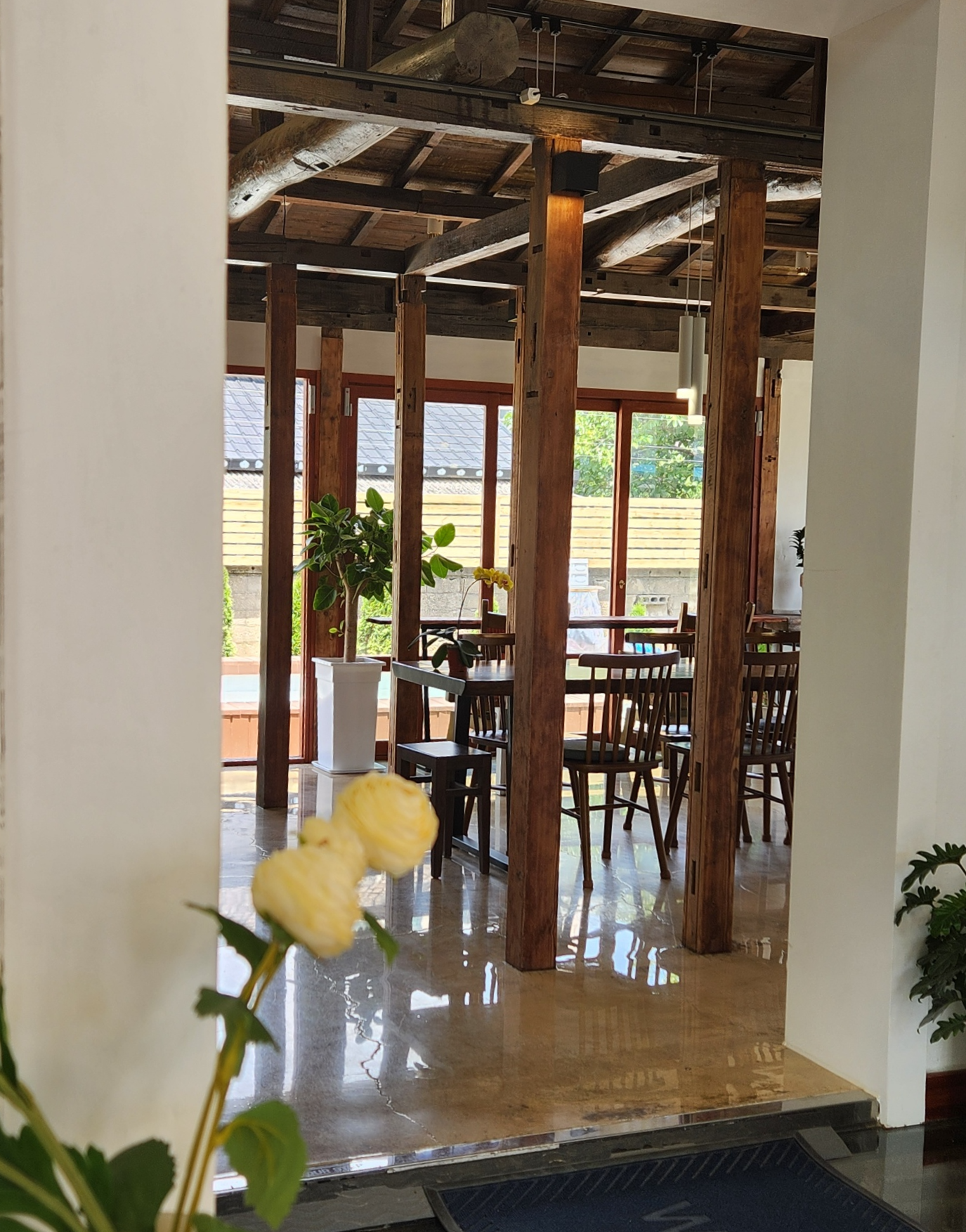 내부에 중간중간 세워져 있는 나무 기둥을 따라 시선을 옮기다 보면 보이는 천장까지도 고즈넉함이 고스란히 느껴지죠.