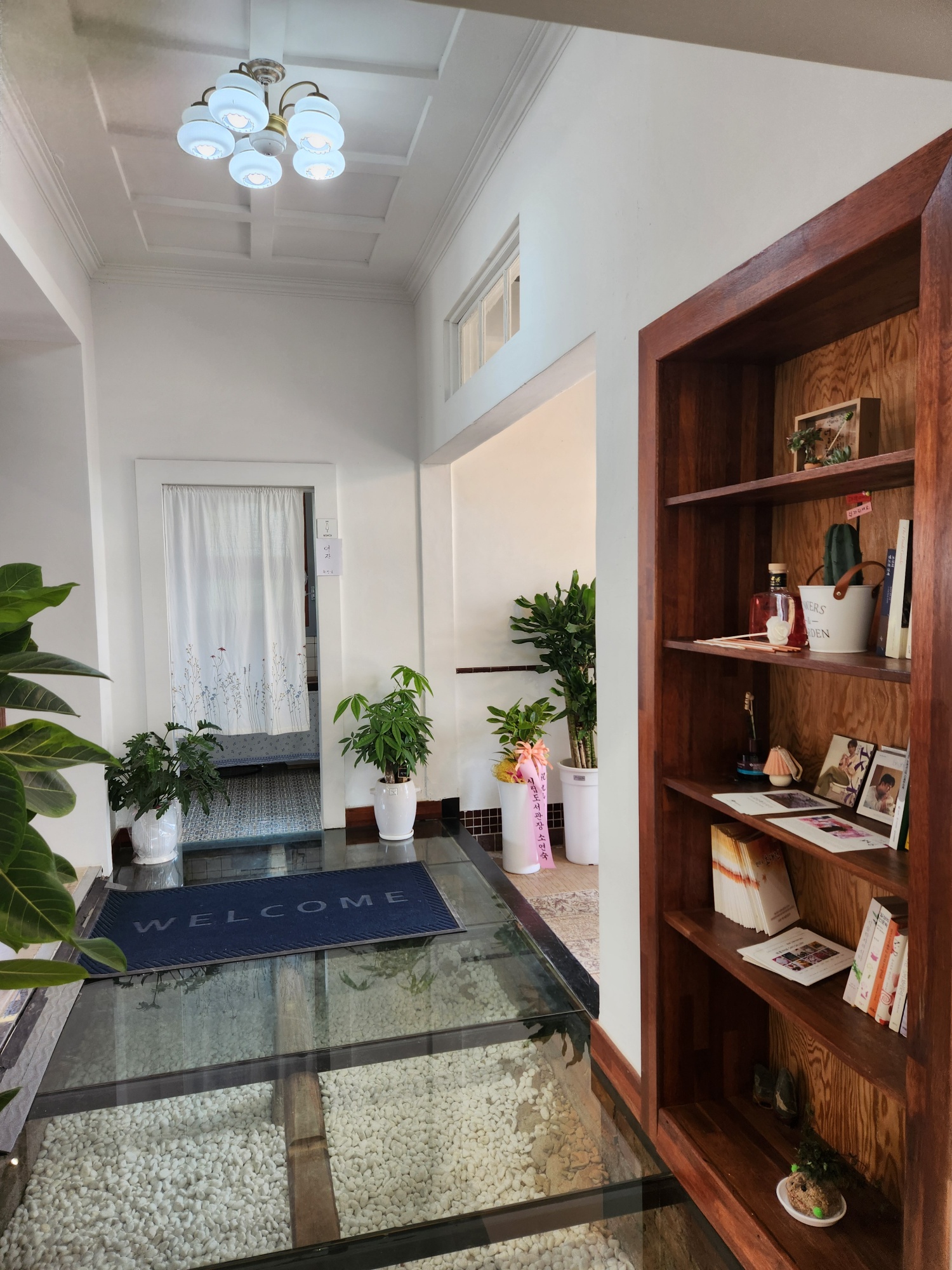 가옥의 특징을 살려서 꾸며놓은 게 특징이라서, 입구 쪽 바닥을 유리로 해둔 게 꽤 포인트가 되는 것 같아요.