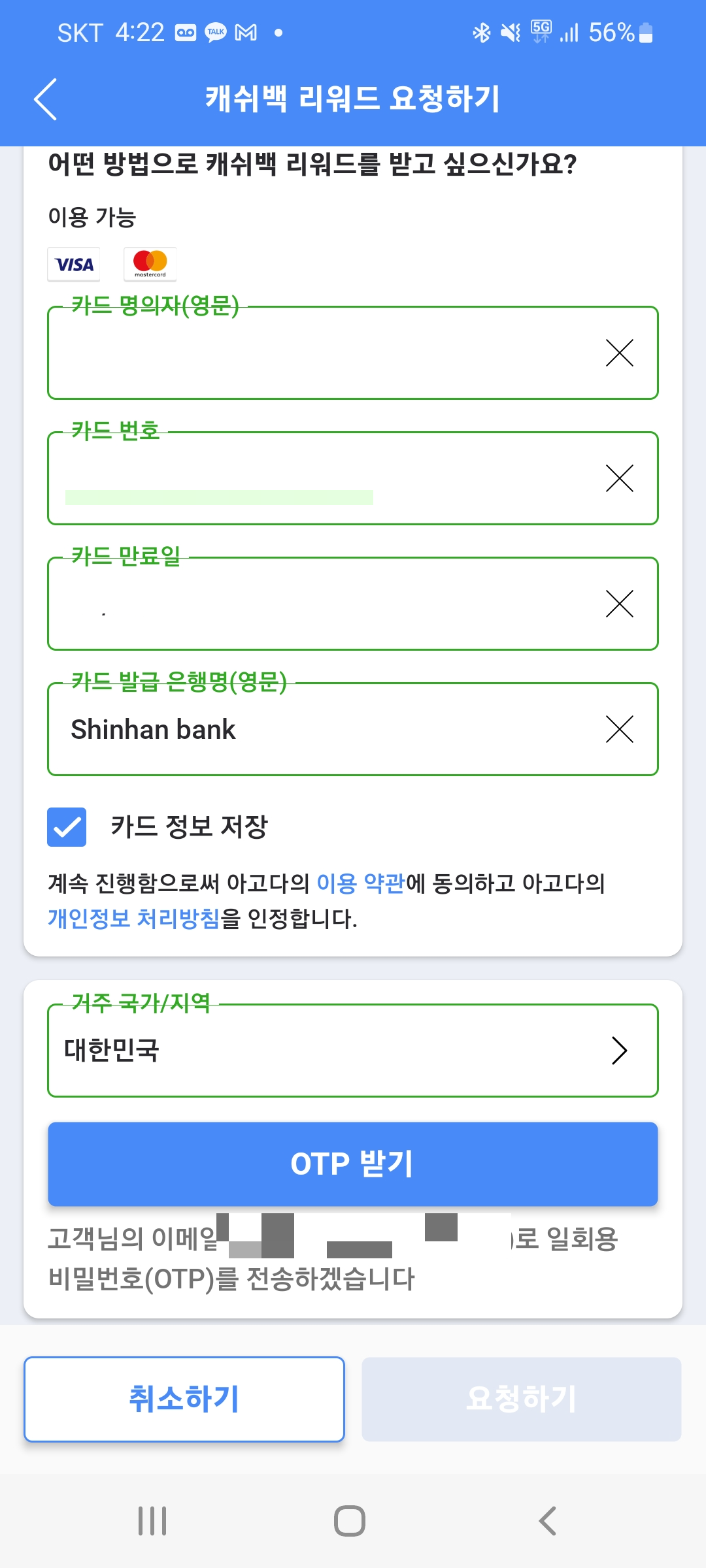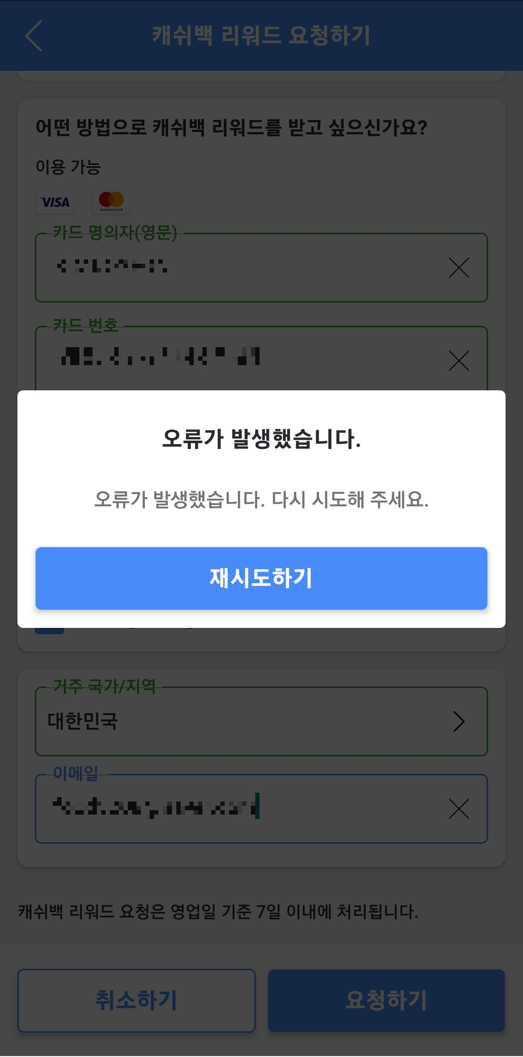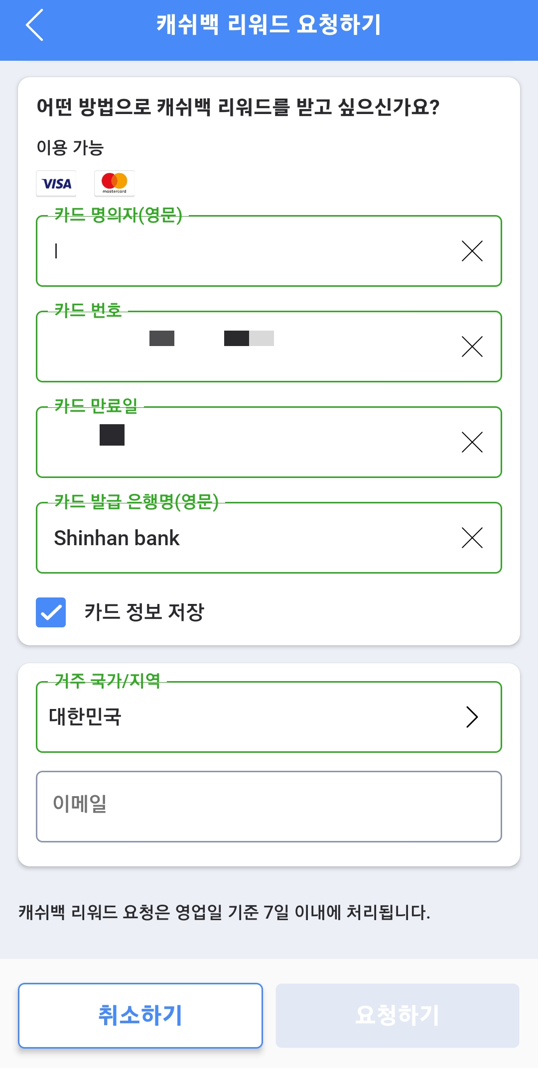 캐시백 리워드 신청이