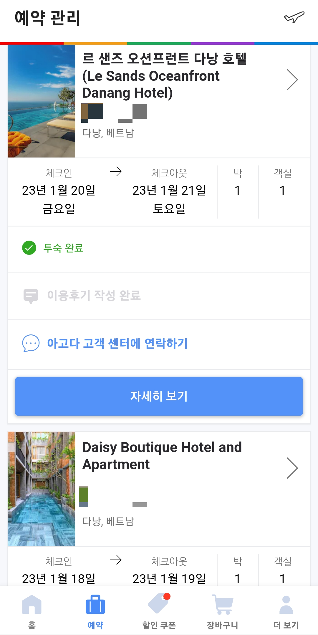 아고다로 예약했던 숙소 리워드