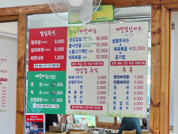 주메뉴는 삼겹살, 백숙인 것 같은데요.