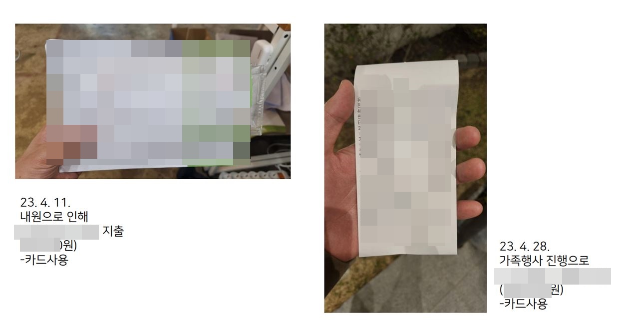 병원과 가족행사로 사용한 영수증 등을 첨부하였고,