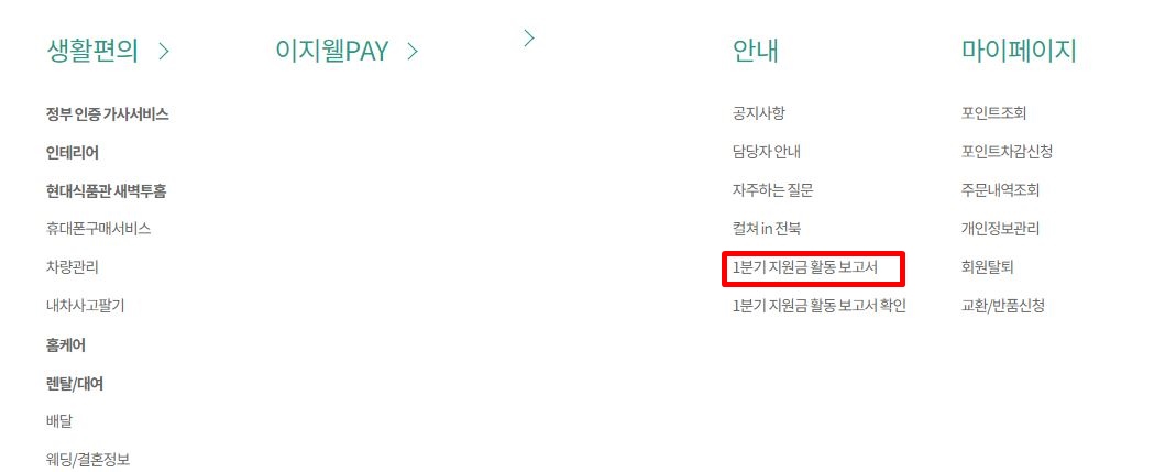 3. 전체 메뉴보기 중 하단의 1분기 지원금 활동 보고서 클릭