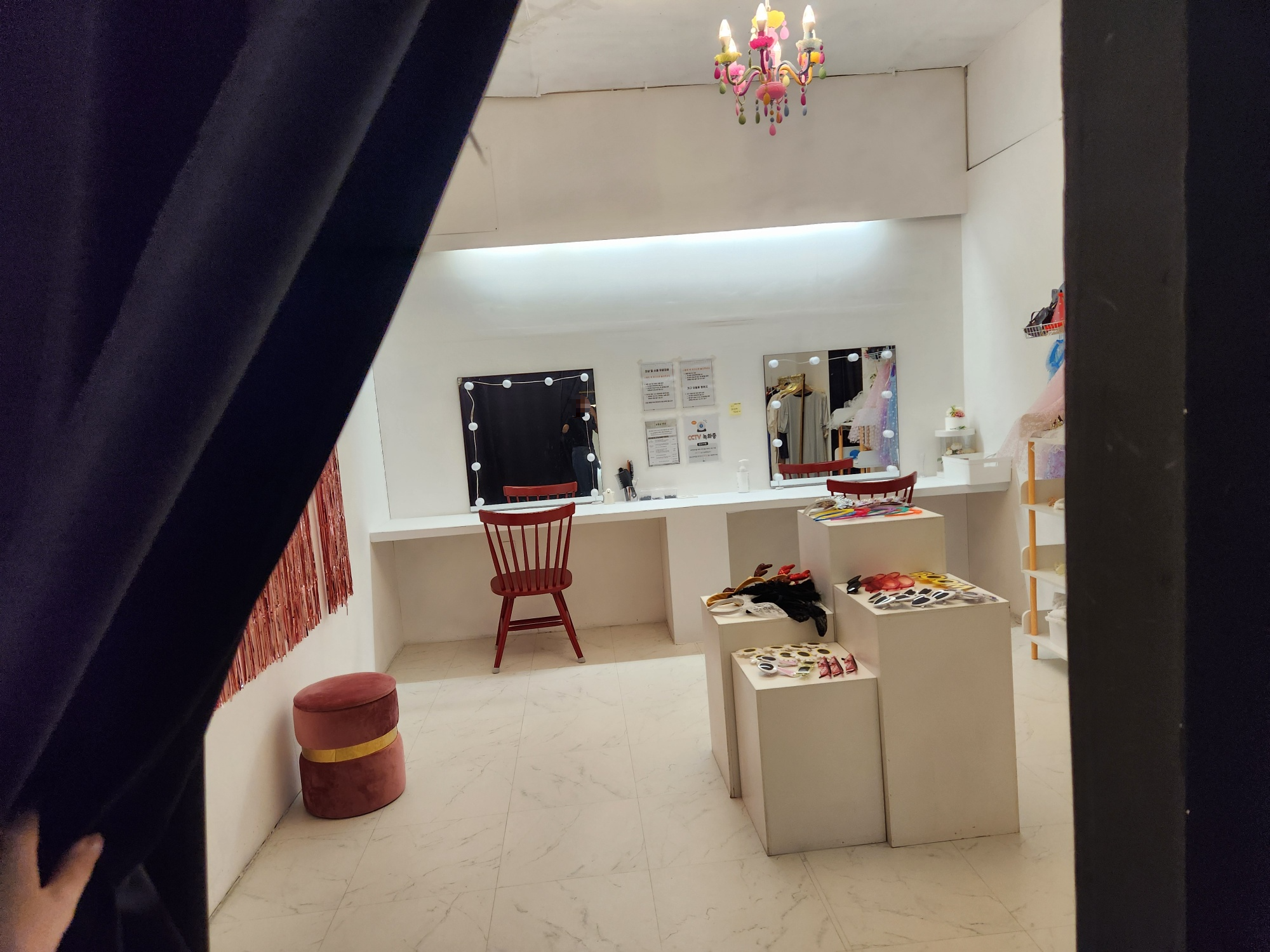 의상이 걸려있는 행거 옆으로 들어오면 있는 곳이에요.
