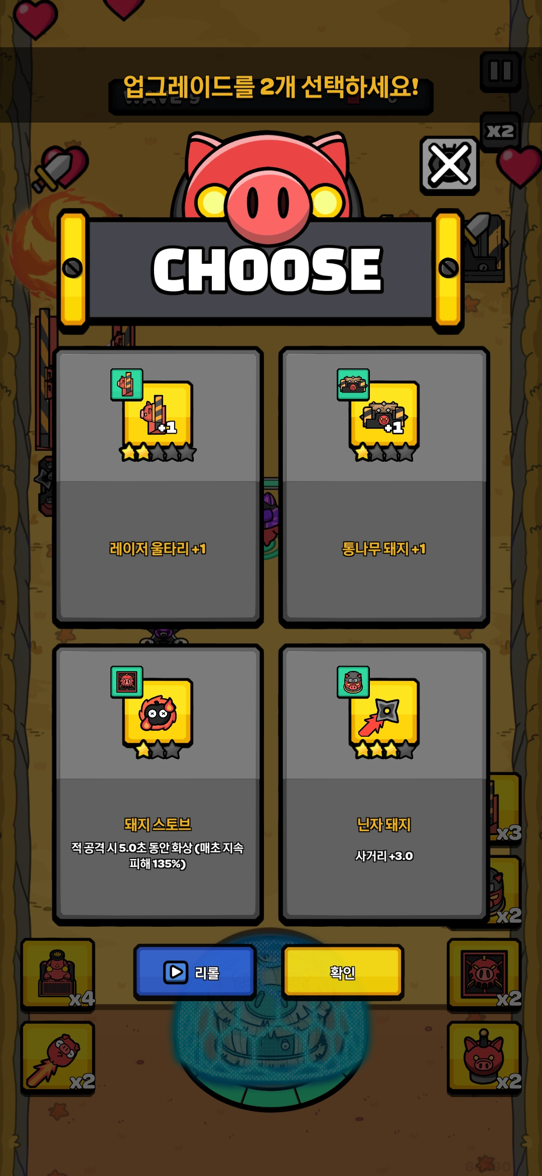 매번 라운드가 지나면 타워 또는 업그레이드를 선택해서 진행하는 방식입니다.