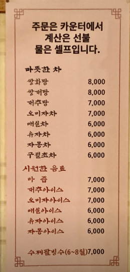아무래도 전통찻집이다보니 쌍화탕, 대추탕이 메인인데요.