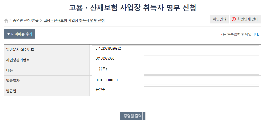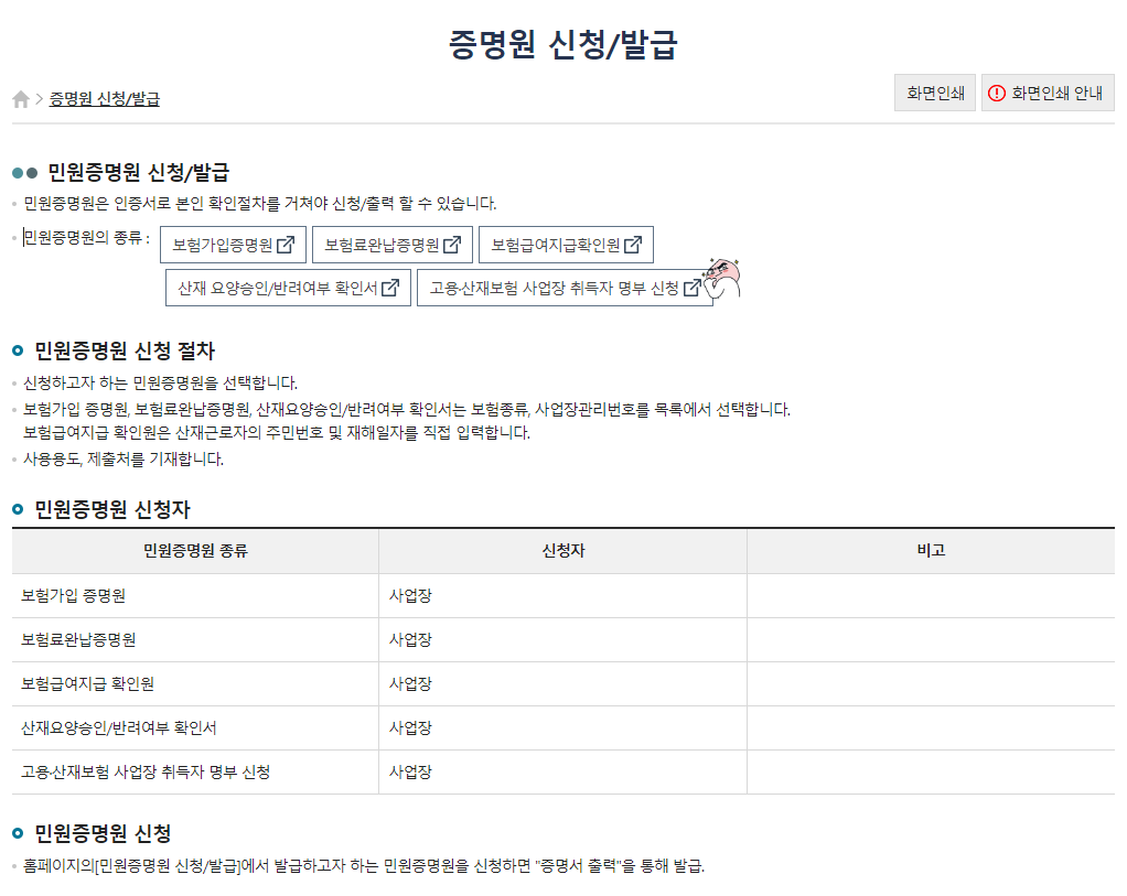 저희는 고용 산재보험 사업장 취득자 명부를 신청하러 왔으니