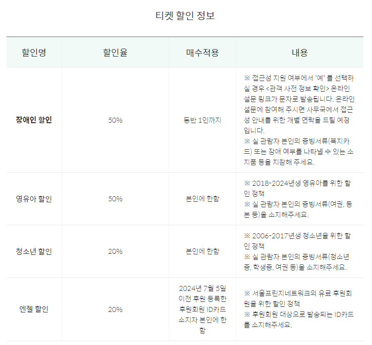 티켓을 할인받을 수 있는 방법도 있으니 위 표를 참고하세요.
