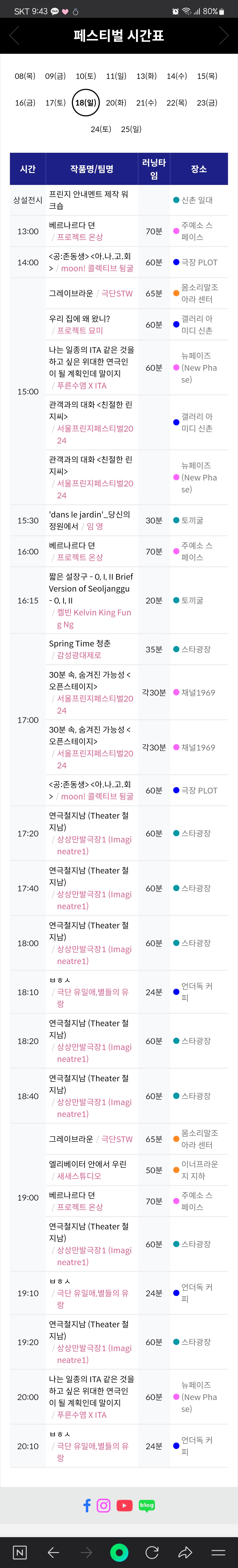 서울 프린지 페스티벌 세부 일정(시간표)은 홈페이지에서 조회할 수 있어요.