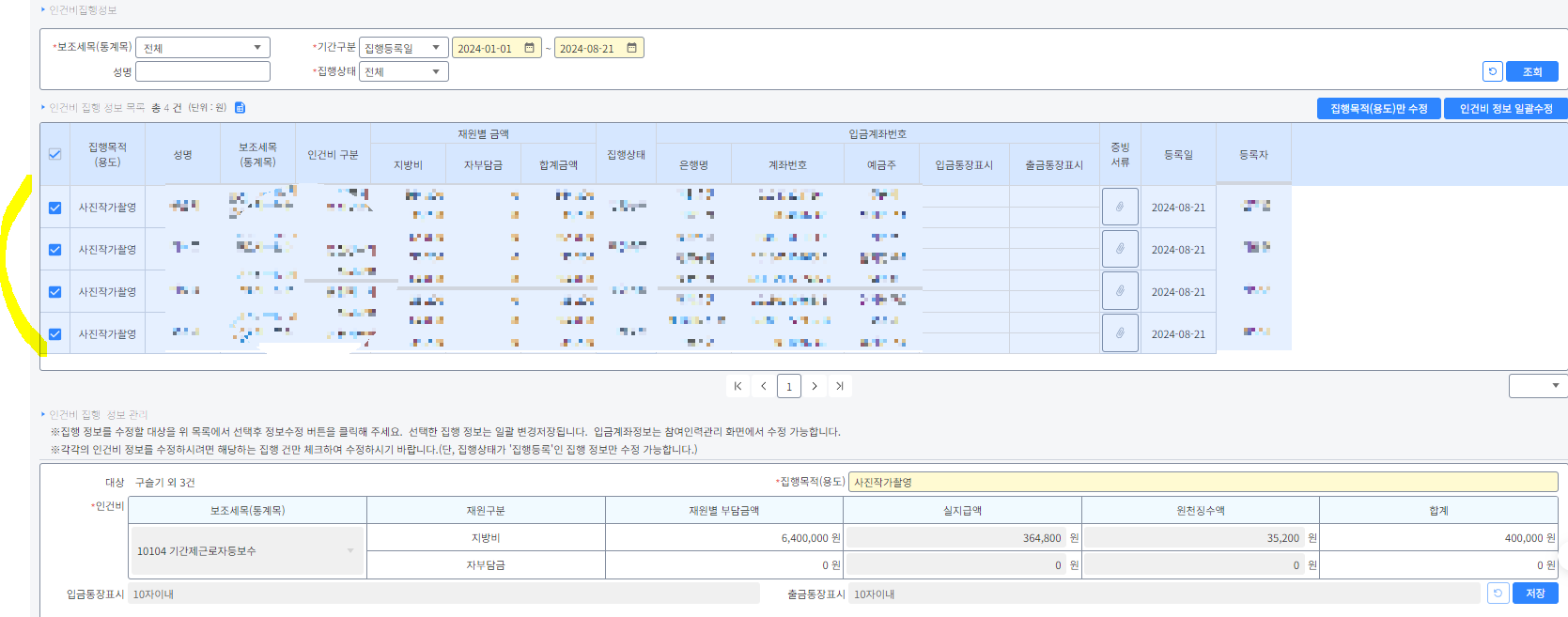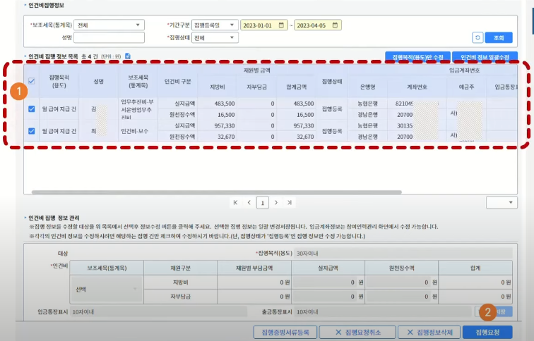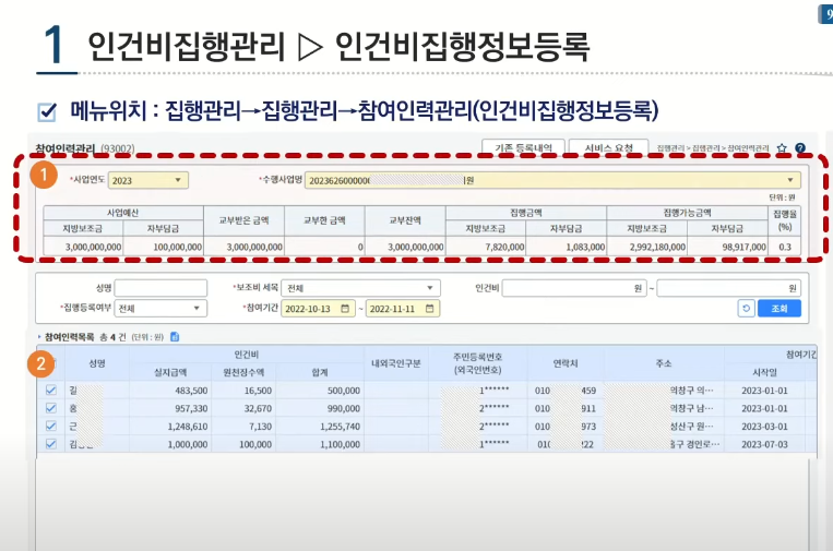 등록한 참여인력관리 정보를 활용하여 인건비 집행을 진행합니다