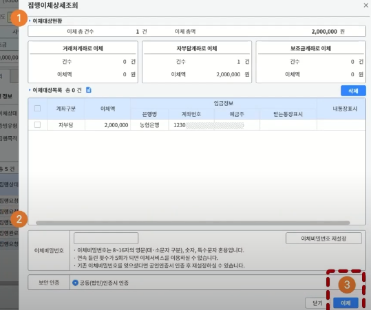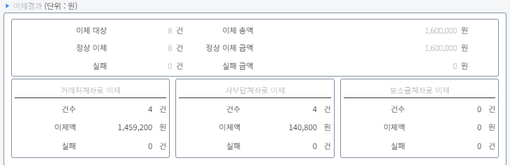 집행이체상세조회라는 팝업창을 조회할 수 있습니다.