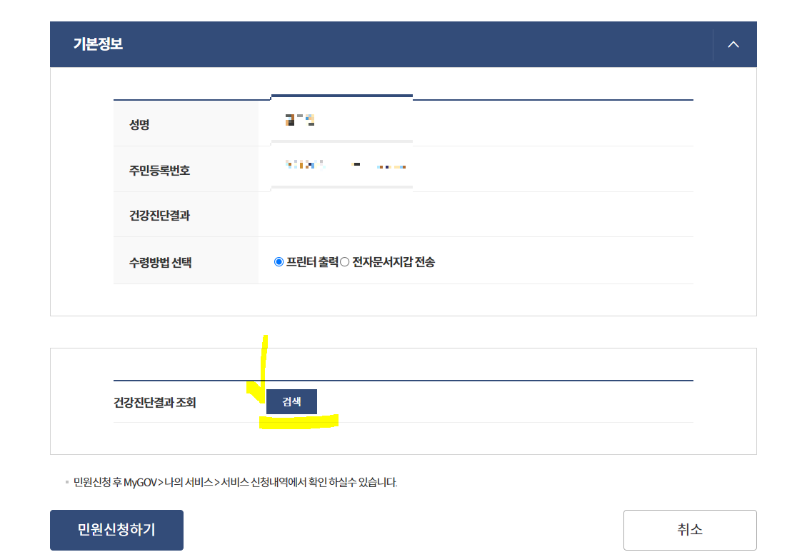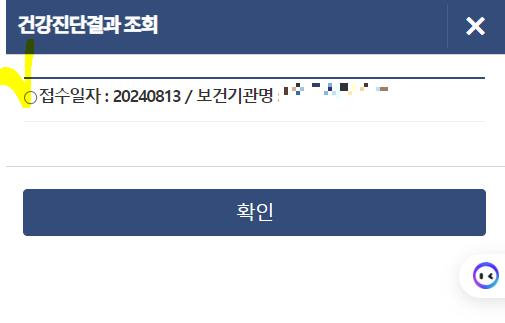 건강진단결과 조회 우측의 검색버튼을 눌러
