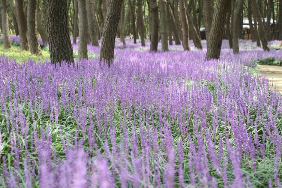 소나무로 가득한 넓은 숲에 600만본의 맥문동꽃을 심어 전국에서 최대 규모로 풍성한 맥문동꽃을 볼 수 있는 만큼 숲의 정취도 느끼고 보랏빛 꽃 사이에서 인생사진 남기기에도 딱인 것 같아요.