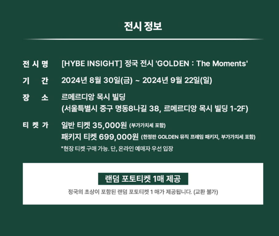 정국 전시회|GOLDEN : The Moments |티켓예매, 가격, 기간, 위치, 전시내용