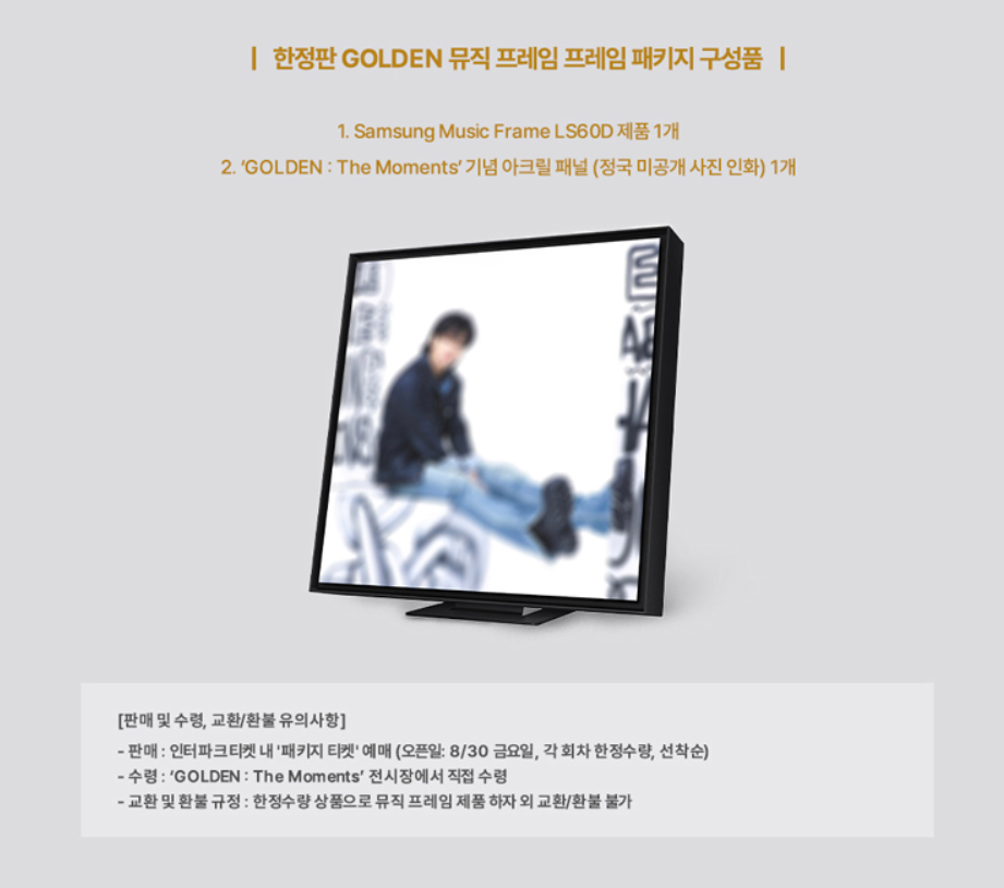 패키지 티켓의 경우에는 한정판 GOLDEN 뮤직 프레임 패키지가 포함된 가격이에요.