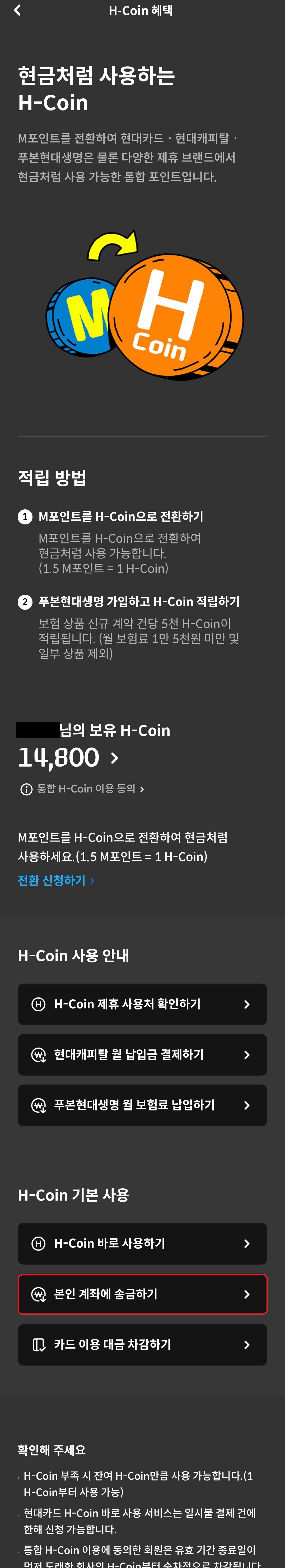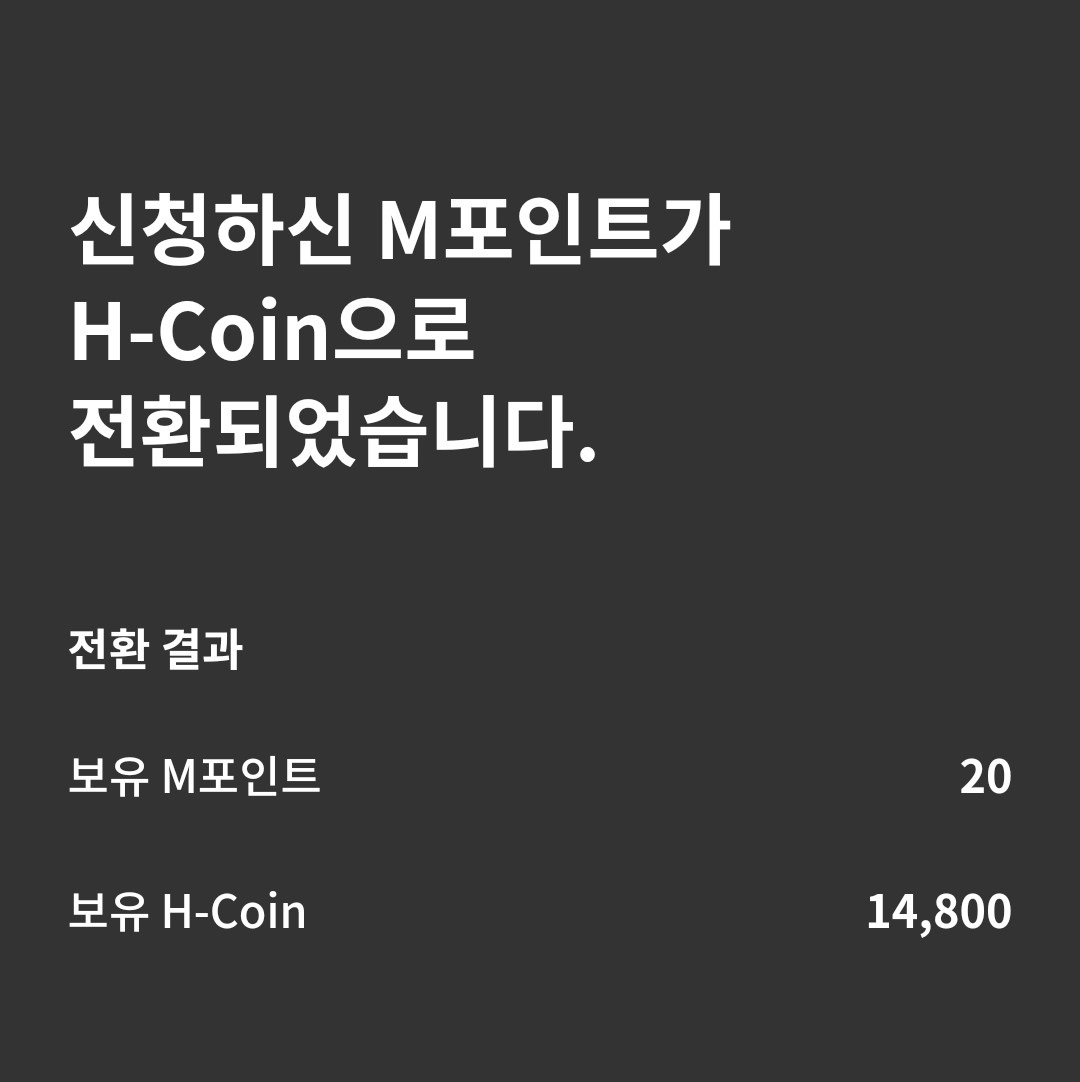 이렇게 무사히 M포인트를 H-Coin으로 전환했네요.
