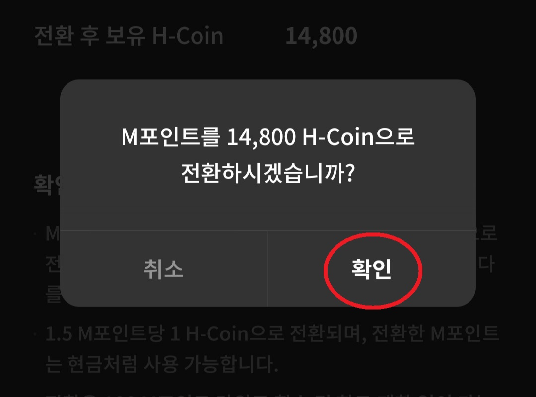 먼저 M포인트를 H-Coin으로 전환한 후에