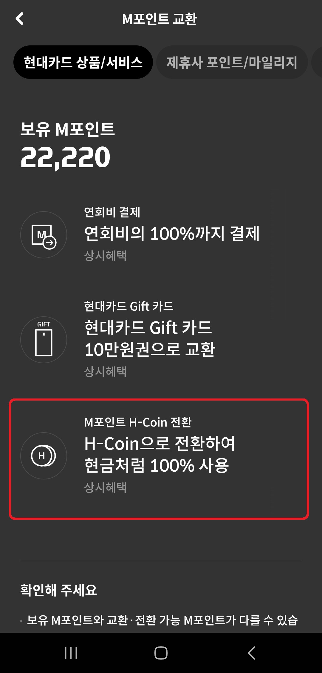 3. M포인트 H-Coin으로 전환을 터치합니다.