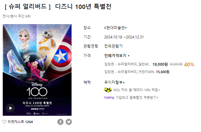 현재는 슈퍼 얼리버드로 40% 할인가에 구매할 수 있어 성인 1.8만 원 / 아동 1.56만 원에 구매 가능합니다! (인터파크 티켓에서 구매 가능)