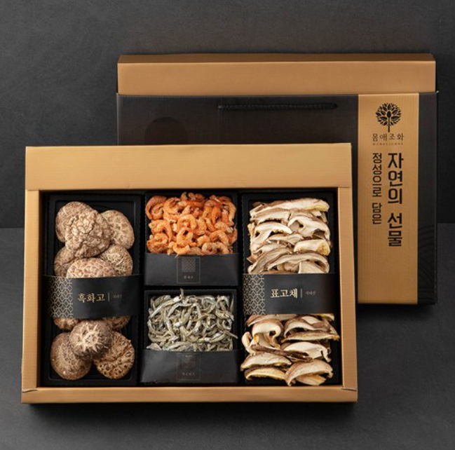 저는 이번에는 이러한 버섯 건어물류 상품을 구매했습니다. 주변의 이야기를 들어봐도 부모님들이 좋아하시는 선물이라고 좋은 선택이라는 평입니다.