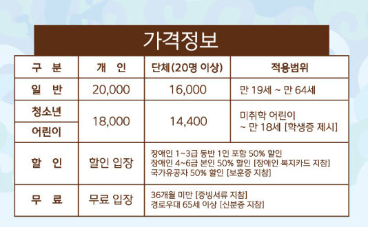*20명 이상의 단체 입장의 경우 할인이 가능하니 정보 확인 바랍니다.
