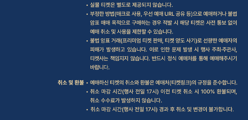 실물 티켓은 별도로 제공되지 않는다고 합니다.