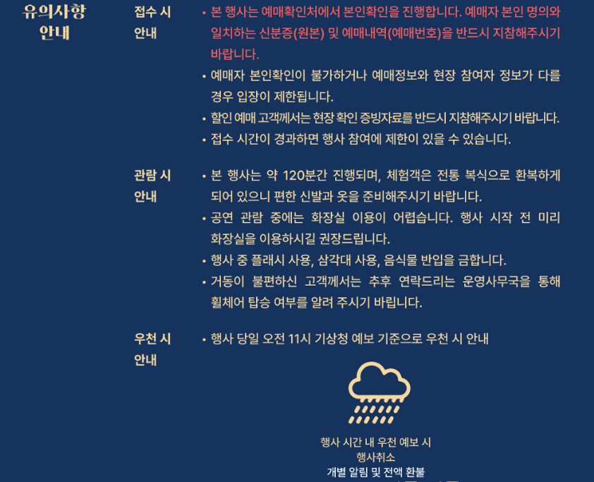 우천 시에는 행사가 취소된다고 하니 참고하시는 게 좋겠습니다.