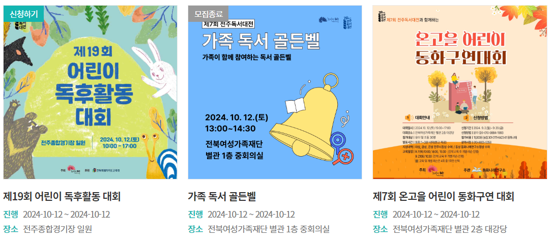 전주독서대전 누리집 사이트에서 선착순으로 접수 중이며