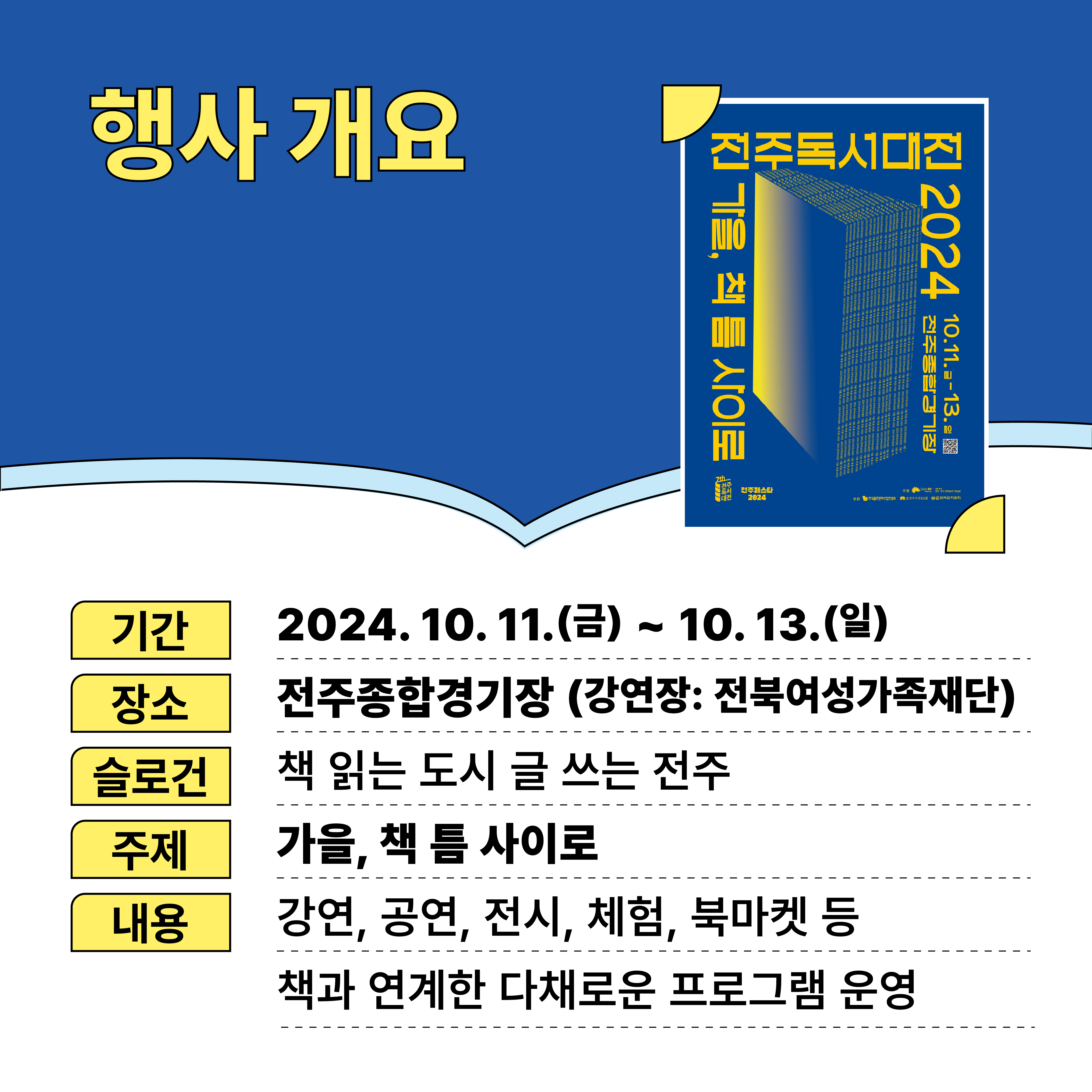 전주독서대전은 다른 축제와 달리, 책과 문화를 통해 사람과 사람을 잇는 공간을 제공하는 축제입니다. 책을 사랑하는 모든 분들에게 특별한 경험이 될 것 같네요! 더 자세한 정보는 공식 인스타그램과 홈페이지에서 확인하세요!
