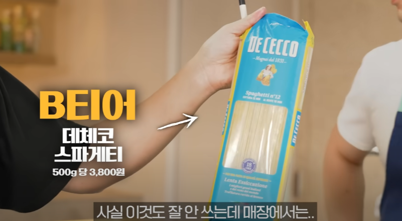 심지어 매장에서 가장 많이 쓰는 것은 D티어에 위치한 디벨라 스파게티 파스타라고 하더군요..! 등급표를 보면서 충격받은 승우아빸ㅋㅋㅋㅋ