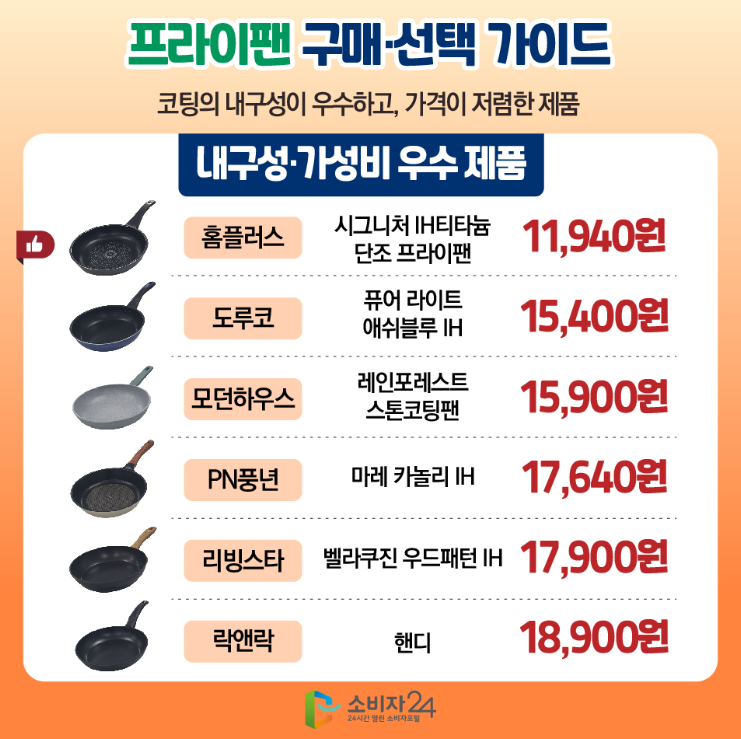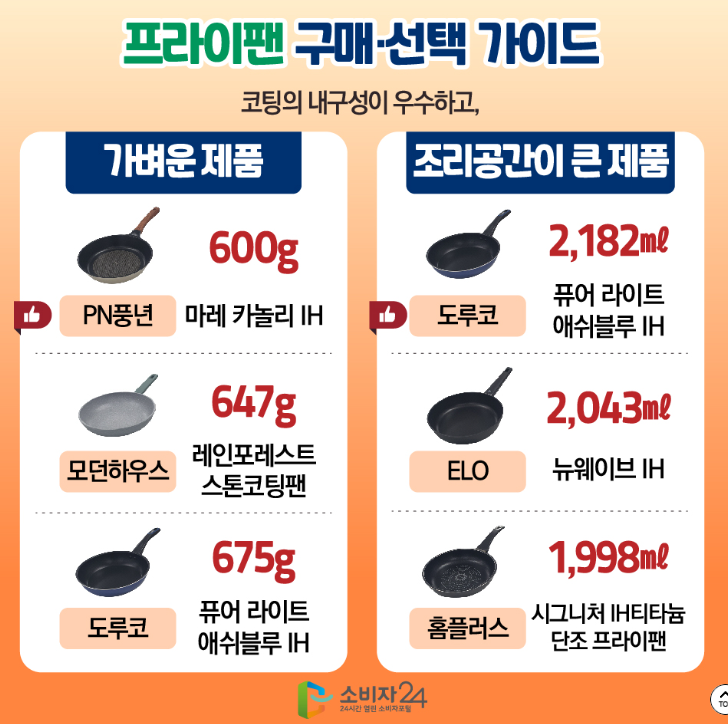 한국소비자원에서 직접 비교한 13종 프라이팬 후라이팬 추천 / 순위