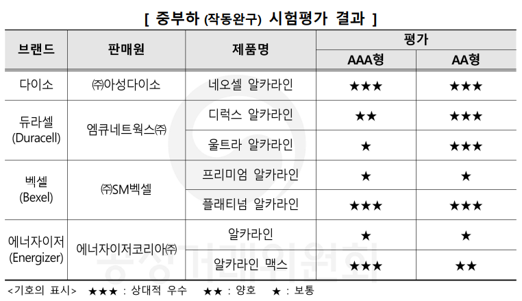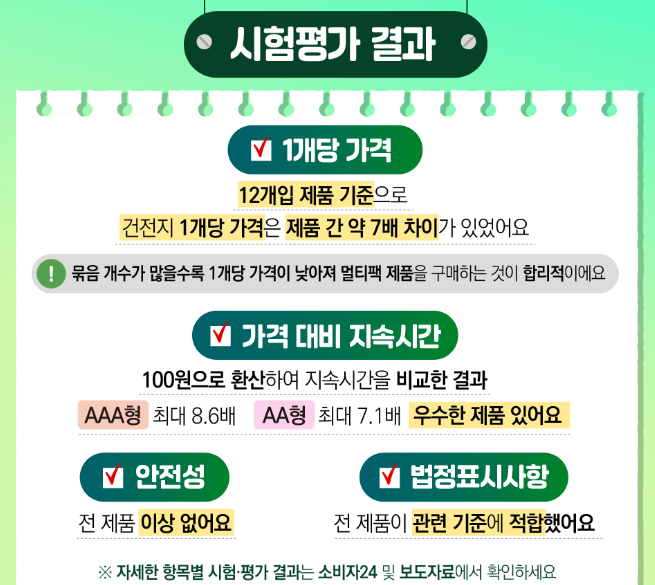 시험평가결과 / 어떤 건전지 사면 되는데?
