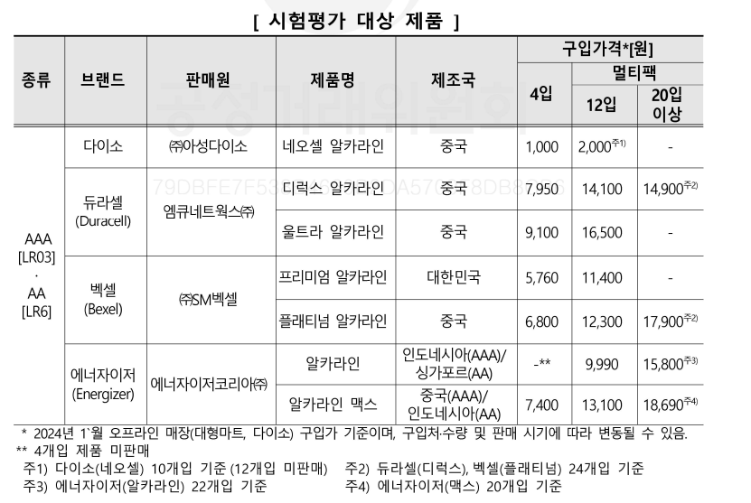 다이소 건전지 정말 괜찮을까? 안정성, 성능 등 한국소비자원에서 비교한 오래가는 건전지 브랜드 / 건전지 순위 비교